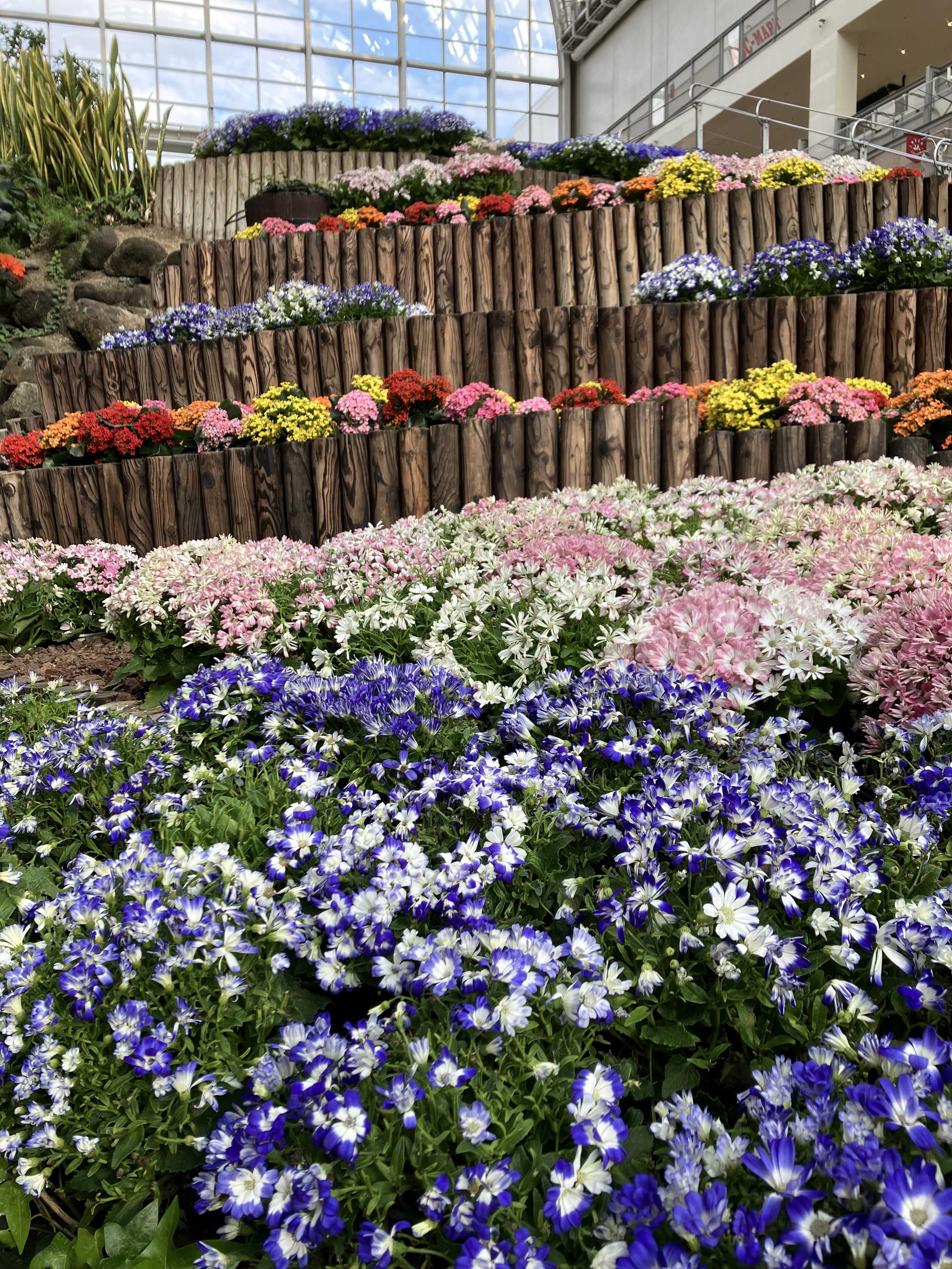 一年を通して季節のお花が楽しめるアトリウムの庭園。春の爽やかさを感じる今の時期は、アトリウムのお花も一段と生き生きして見えます!色鮮やかなお花と一緒に記念撮影はいかがでしょうか?