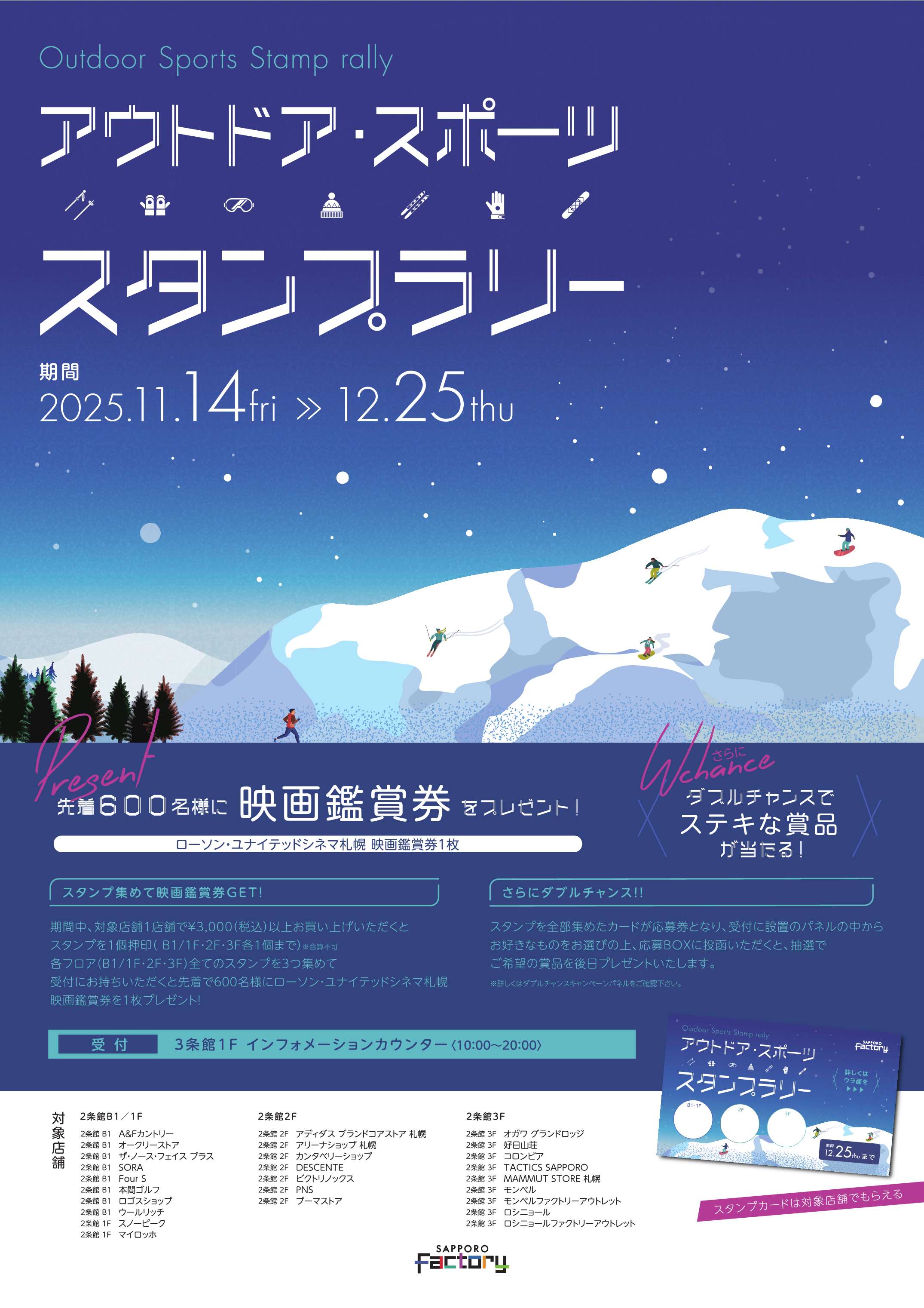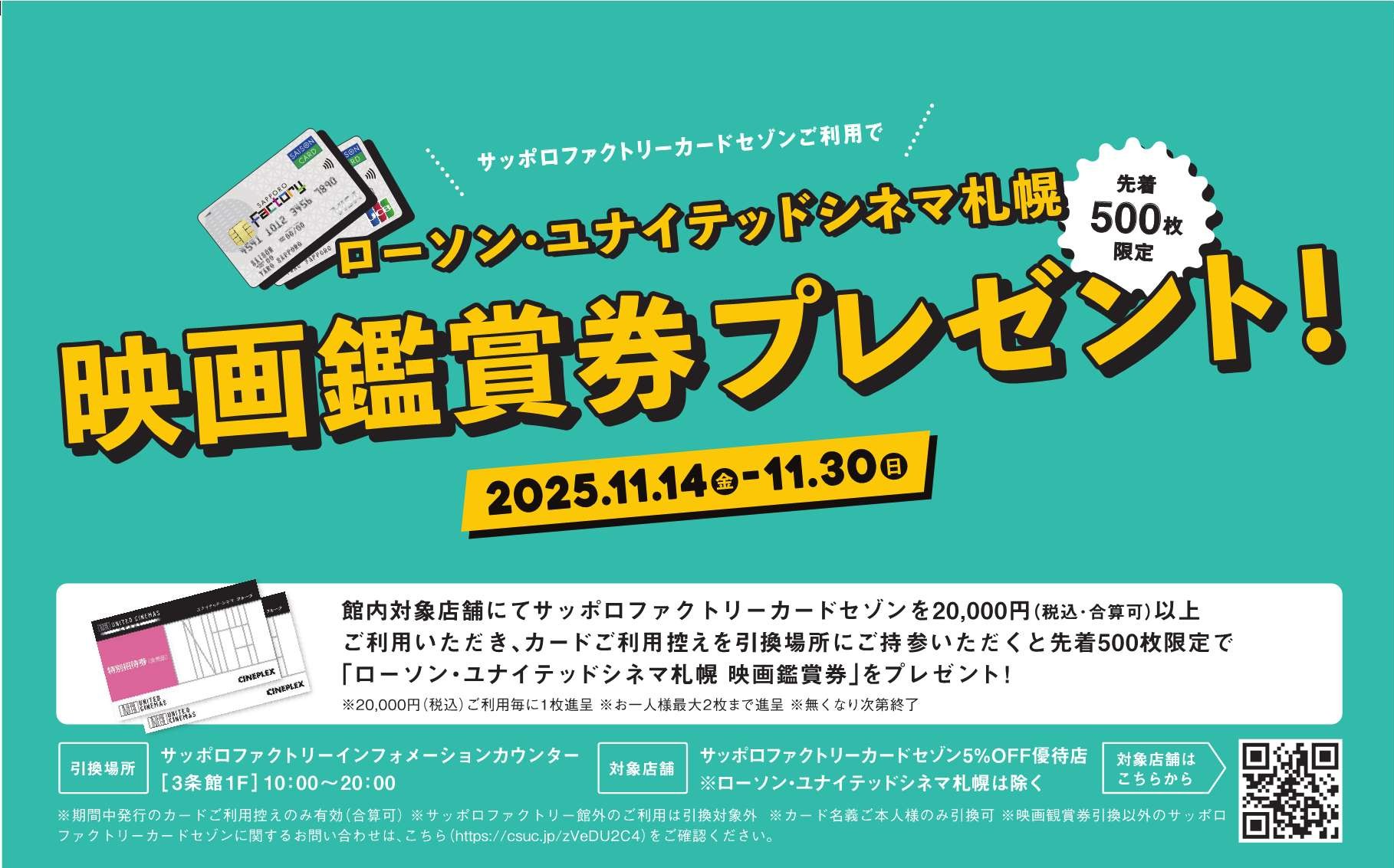 サッポロファクトリーカードセゾンご利用でローソン・ユナイテッドシネマ札幌 映画鑑賞券プレゼント!