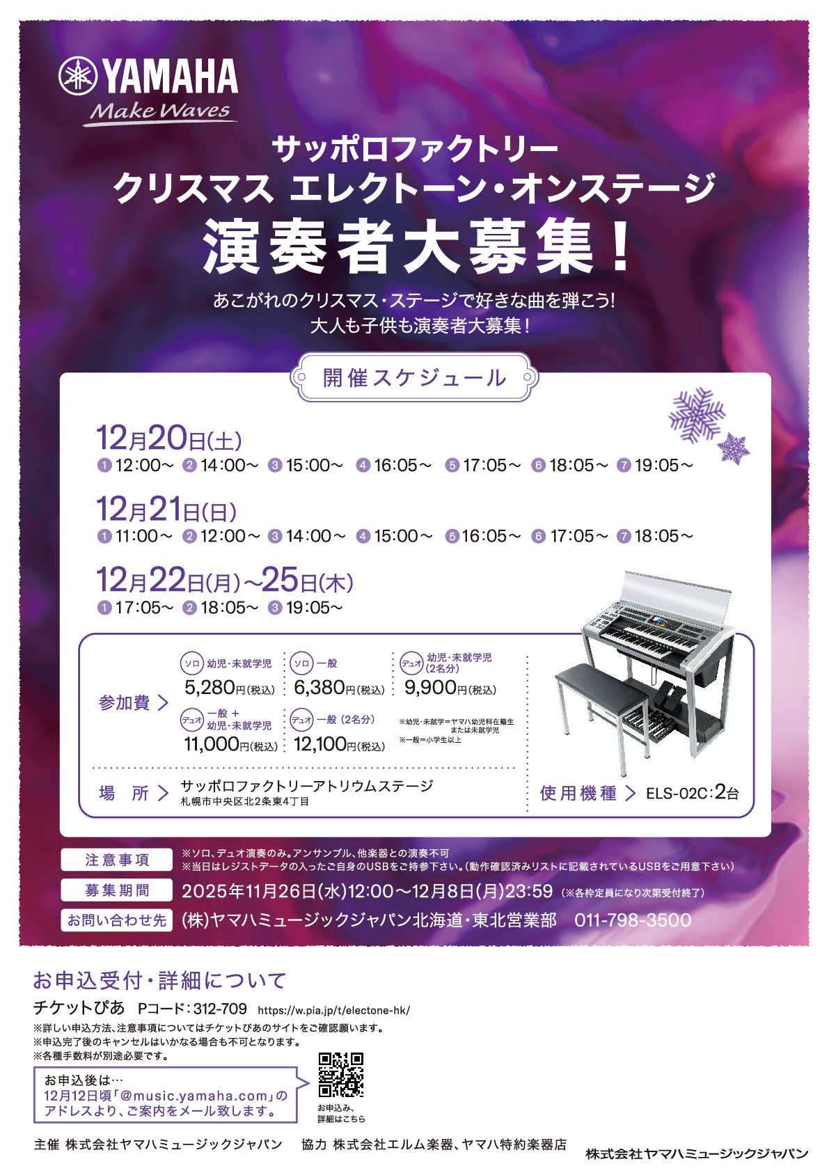 演奏者大募集!『クリスマス エレクトーン・オンステージ』