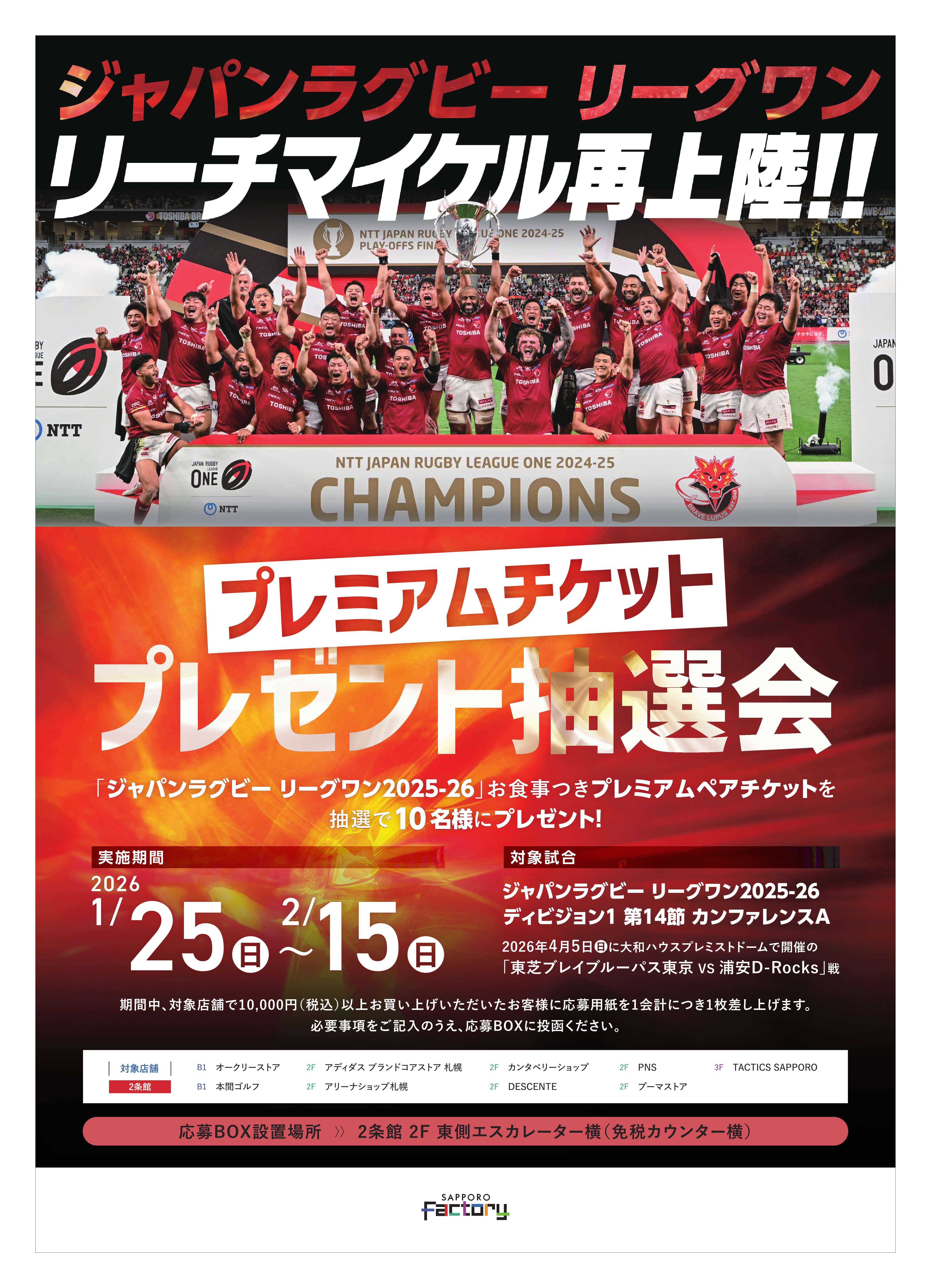 ジャパンラグビー リーグワン プレミアムチケットプレゼント抽選会