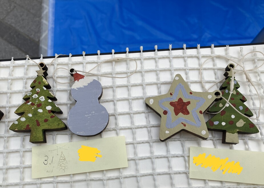 昨年アトリウムに展示したジャンボクリスマスツリーのトドマツや道産材をを加工した材料に、札幌の景観色70色からセレクトした5色を塗るワークショップ、