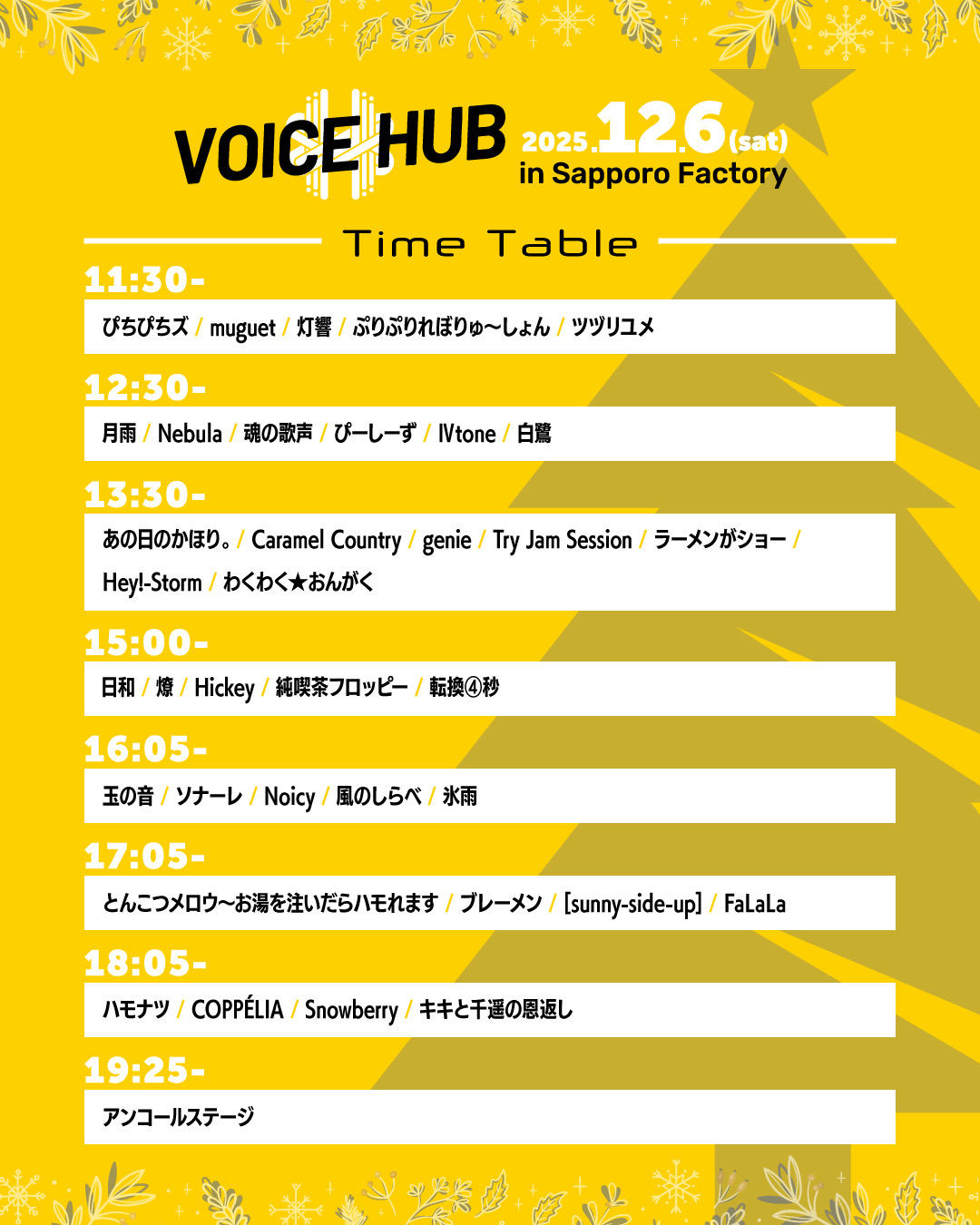 時間:11:30~20:00 料金:観覧無料 主催者:VOICE HUB 実行委員会 お問い合わせ先:https://voicehub.link