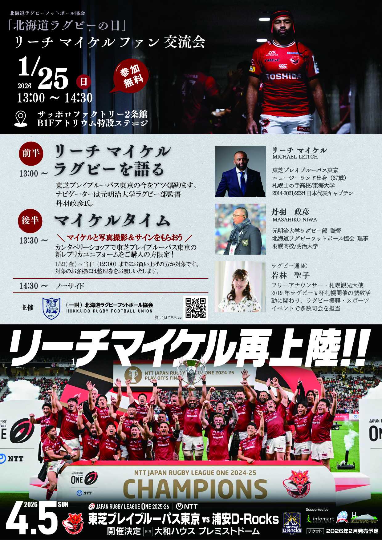 2026/1/25(日) 「北海道ラグビーの日」リーチ マイケル ファン交流会