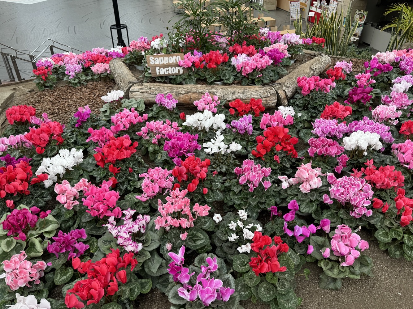 場所は3条館1Fインフォメーション前です。花壇で咲いていたシクラメンをぜひおうちでお楽しみください♪