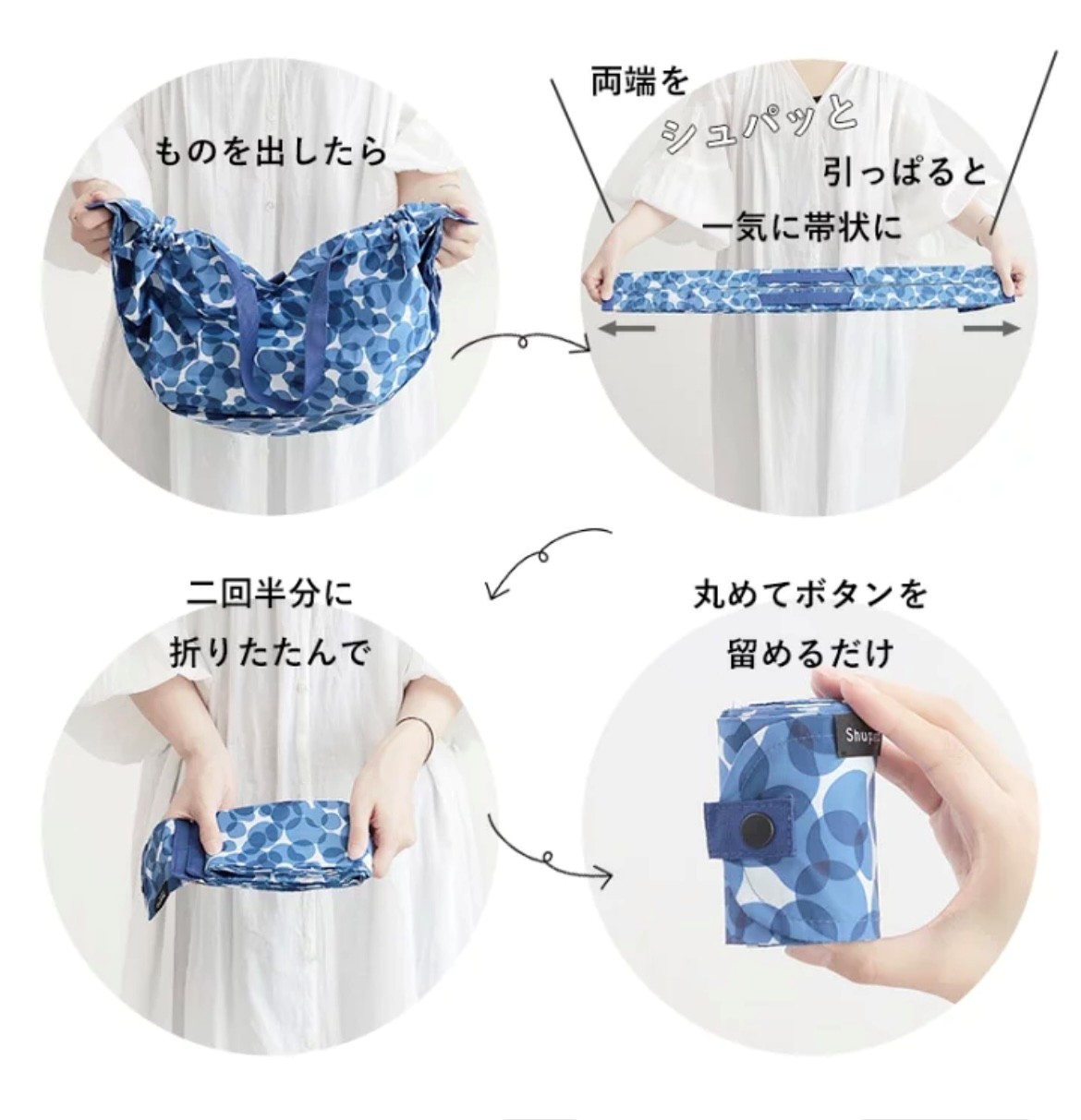 シュパッッと袋を展開し、畳める。