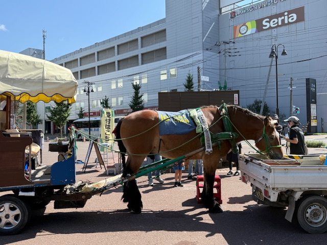 西広場からは、「創成イースト まち馬車めぐり」と題し、札幌市内を巡回するまち馬車を運行。