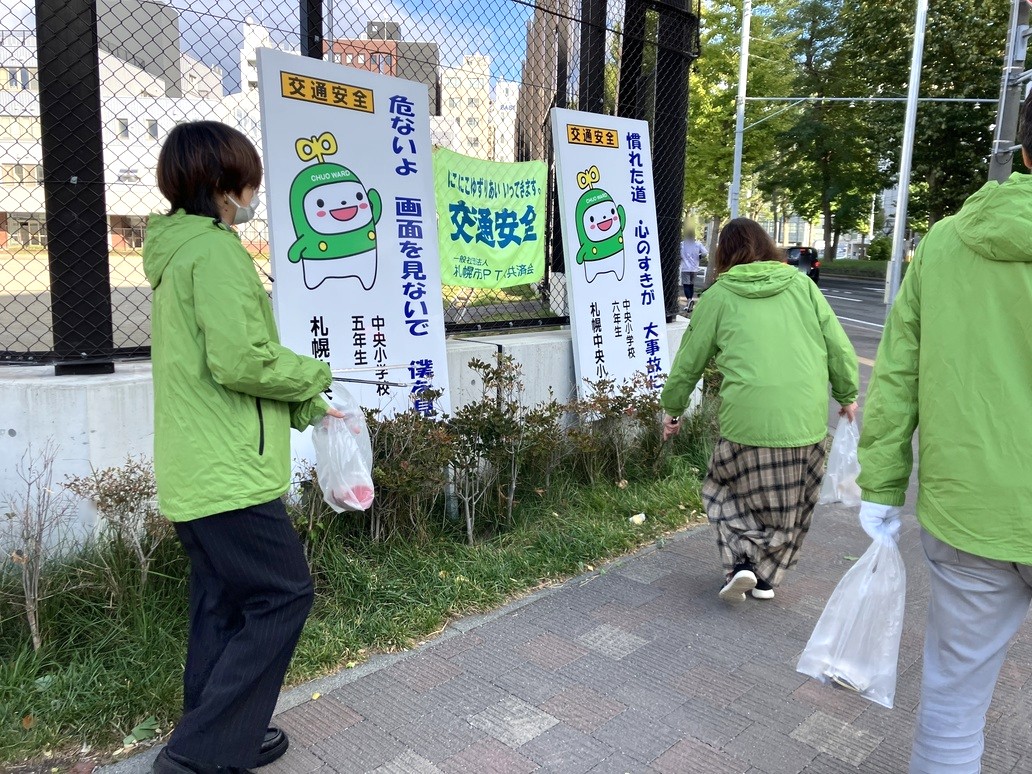 札幌市立中央小学校の児童の下校時に合わせた見守りと、創成イーストエリアの清掃活動を地域の企業・団体と協力して実施。今年度の秋の活動も無事に終了しました。