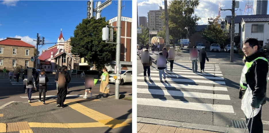 秋の澄んだ空気の中、鮮やかな緑色のビブスやジャンパーを着用して活動を実施。「緑の人だ!」と子どもたちから親しまれるこの目印は、地域の安全を見守る象徴として定着してきています。