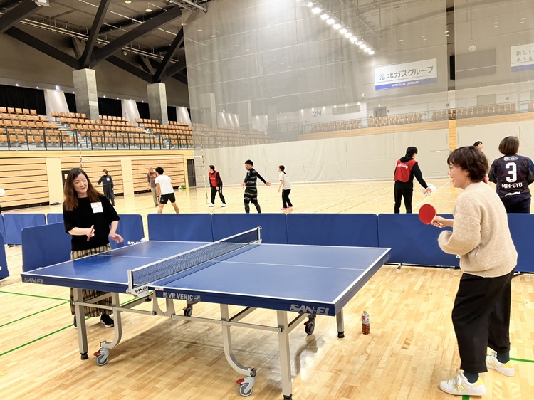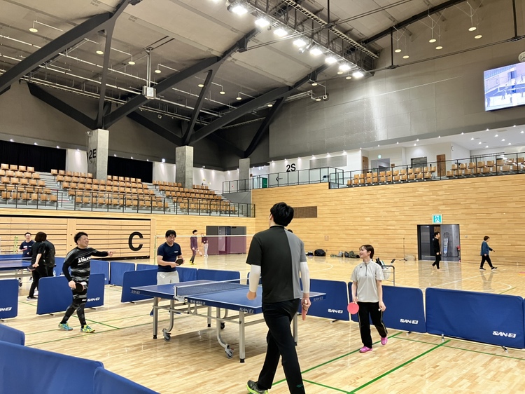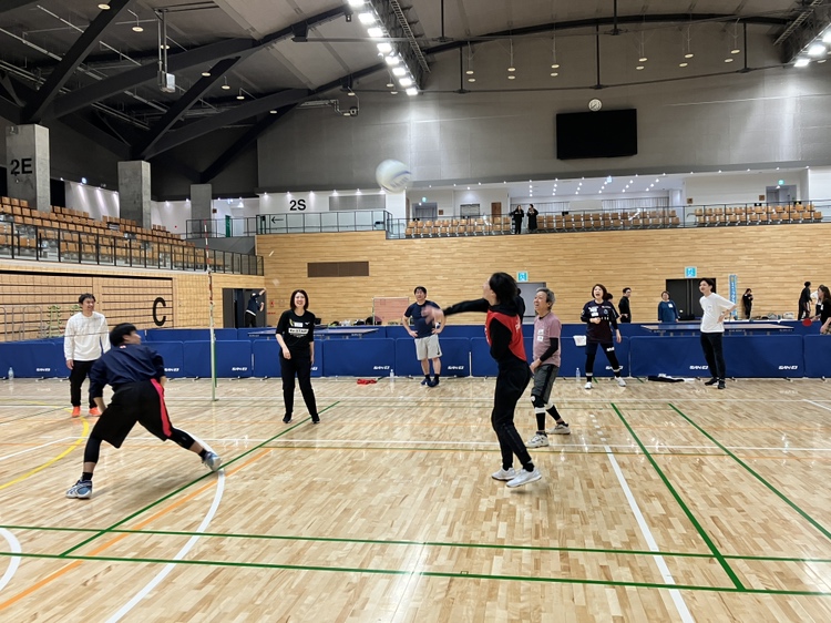 今回は「スポーツを通して交流をしたい」という私たちの思いから、北ガスアリーナさんをお借りしてレクリエーションを企画しました。